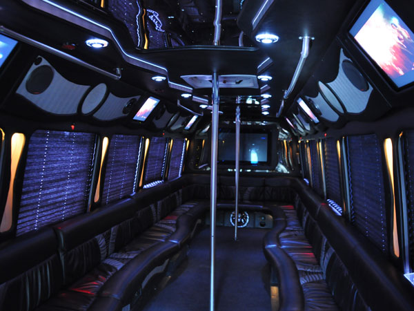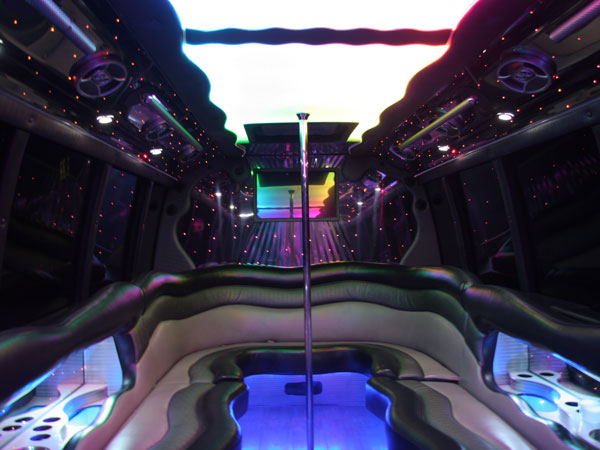 Available in varying sizes, the Party Bus can fit anywhere from fifteen to forty-five guests. Though you may picture the average Party Bus as being no fancier than a regular public bus, varying styles exist and can include such items as the always required stripper pole, flat-screen television with DVD player, CD player, and surround sound stereo setup. The larger the bus, the more likely you are to have access to multiple televisions and luggage room in the back while smaller buses allow for removable seats for extra storage and fewer amenities. Just because the bus is smaller, though, doesn't mean style gets thrown out the window. Despite its size, most Party Buses come equipped with limousine style seating made up of comfortably plush leather chairs.