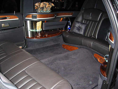 The exterior of the vehicle may read just like an elongated town car, but it is the interior additions that make the stretch limo more then just a ride. An in-vehicle mini-bar comes equipped with crystal clear champagne glasses and, if pre-arranged for it, a bottle of champagne. Bottles of water and cans of soda area also made readily available.